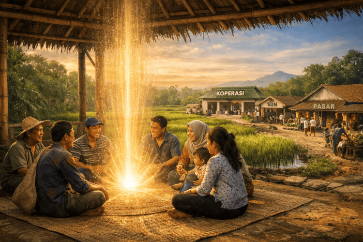 Kedua, struktur KDMP harus didesain untuk menumbuhkan Keterjeratan Kuantum, bukan sekadar rantai komando birokratis. Kelompok-kelompok kecil berbasis rukun tetangga, kelompok tani, atau majelis taklim harus menjadi unit dasar interaksi, tempat kepercayaan non-lokal tumbuh melalui transparansi radikal dan ritual kolektif yang bermakna. Rapat Anggota Tahunan bukan hanya formalitas pelaporan, melainkan ruang perjumpaan dan penguatan ikatan.