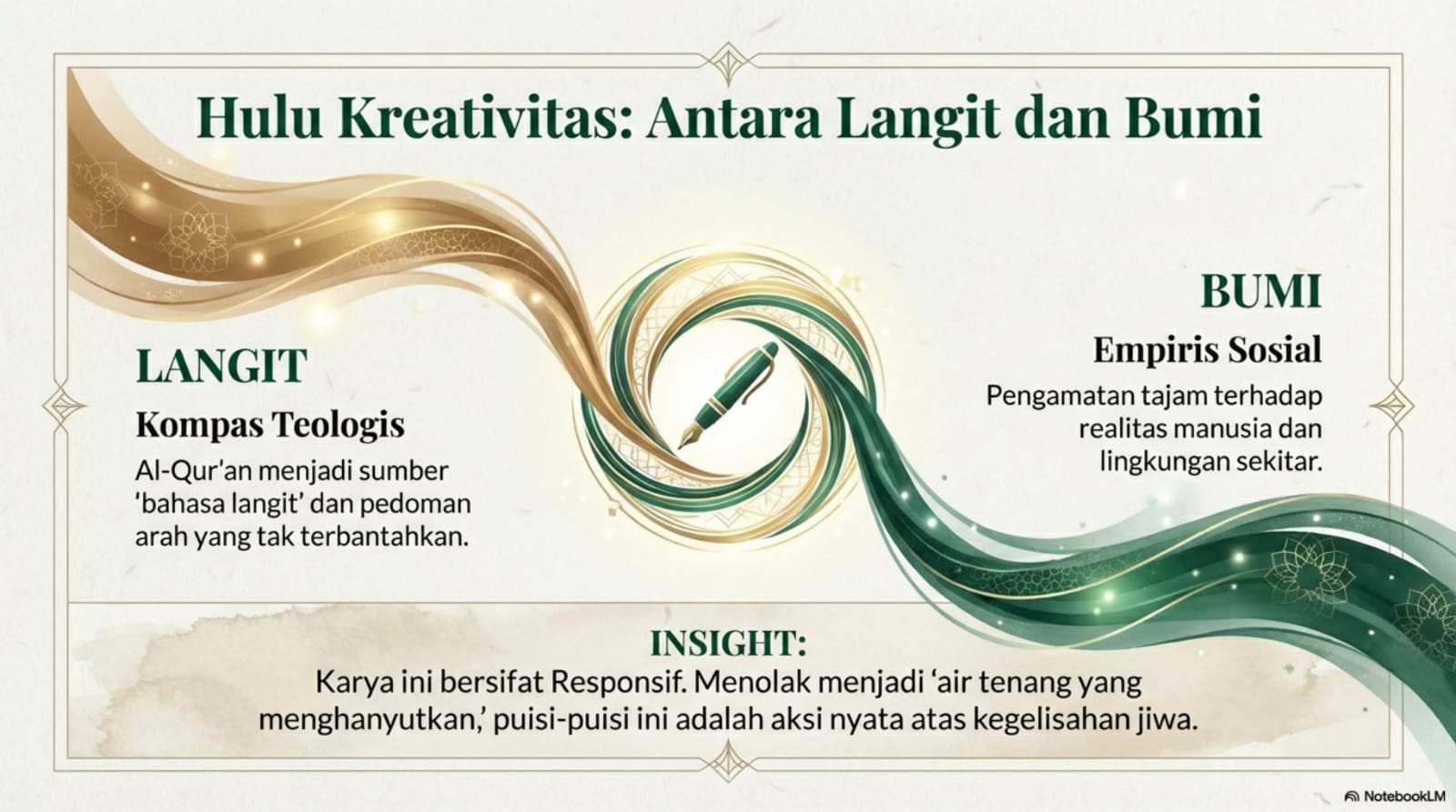 “Sunda punya kosakata batin yang sangat kaya untuk berbicara tentang ketuhanan, kerinduan, dan kepasrahan,” tegasnya dalam sesi diskusi di Kairo. Nilai-nilai khas Sunda seperti silih asih, silih asah, silih asuh pun meresap halus dalam puisi-puisinya, menyandingkan relasi manusia dengan Tuhan dan sesama manusia.