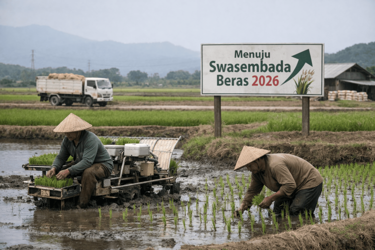 Kondisi swasembada beras di Indonesia saat ini sangat positif. Stok beras nasional mencapai 12,529 juta ton di awal tahun 2026, meningkat 203% dalam 2 tahun terakhir. Ini berarti stok beras cukup untuk memenuhi kebutuhan konsumsi masyarakat selama hampir 5 bulan. Produksi beras juga diproyeksikan meningkat menjadi 34,7 juta ton di tahun 2026, sehingga stok akhir tahun bisa mencapai 16,194 juta ton.