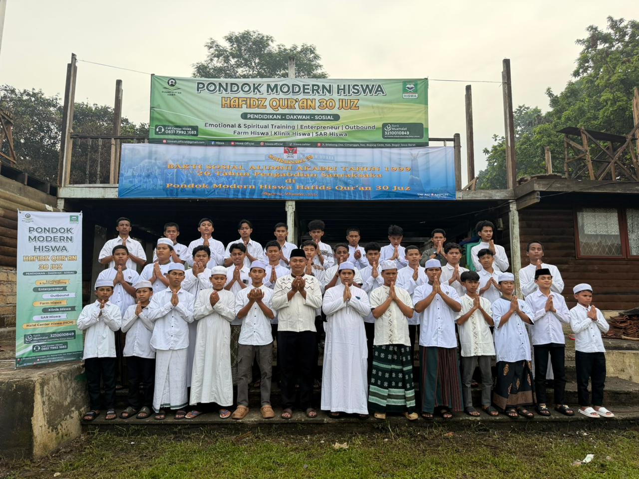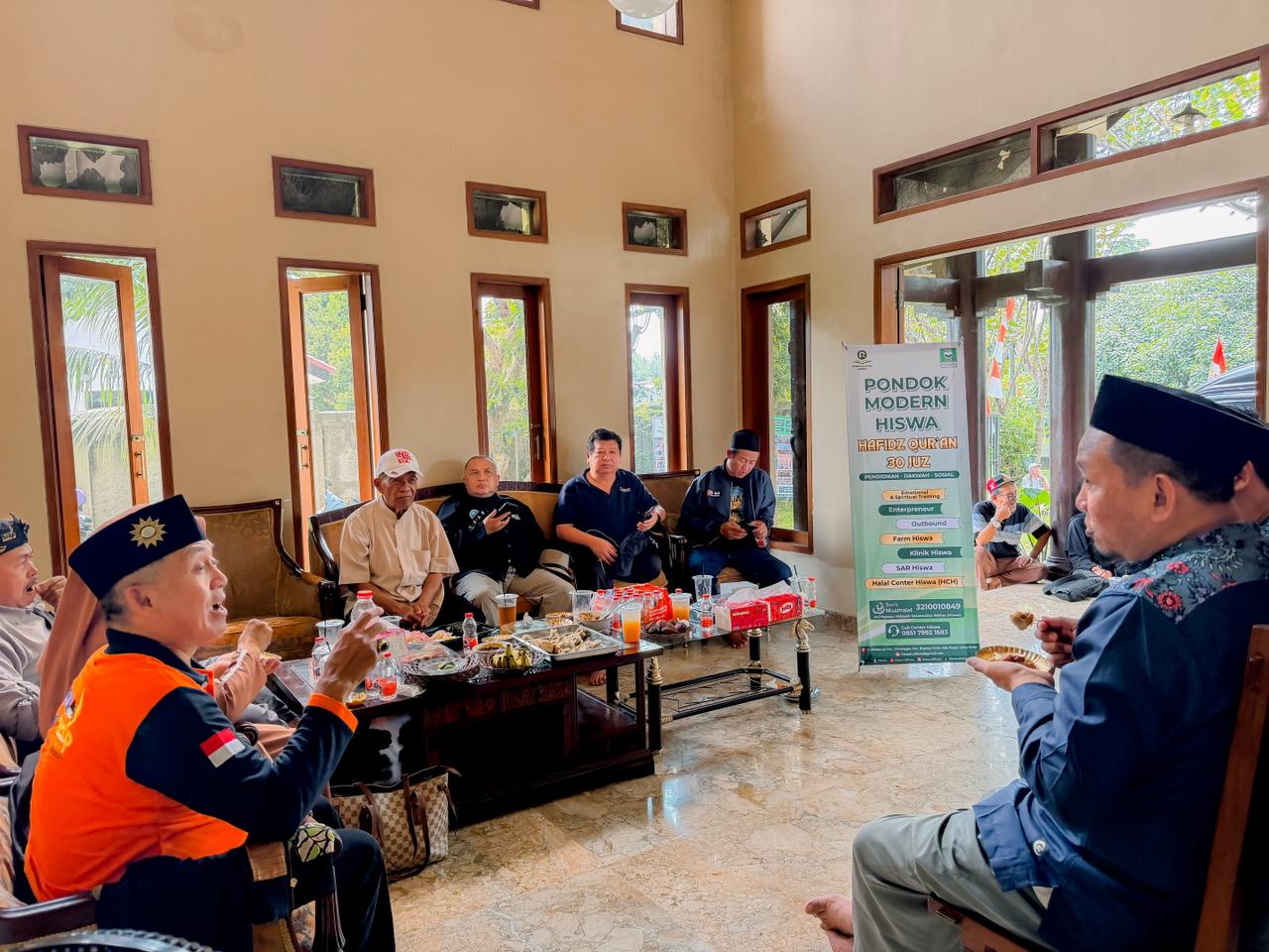 Kedatangan rombongan diterima langsung oleh Ustadz Asep Supriyatna selaku pengasuh Pondok Qur’an Hiswah, didampingi para pengurus pondok serta para santri dan santriwati.