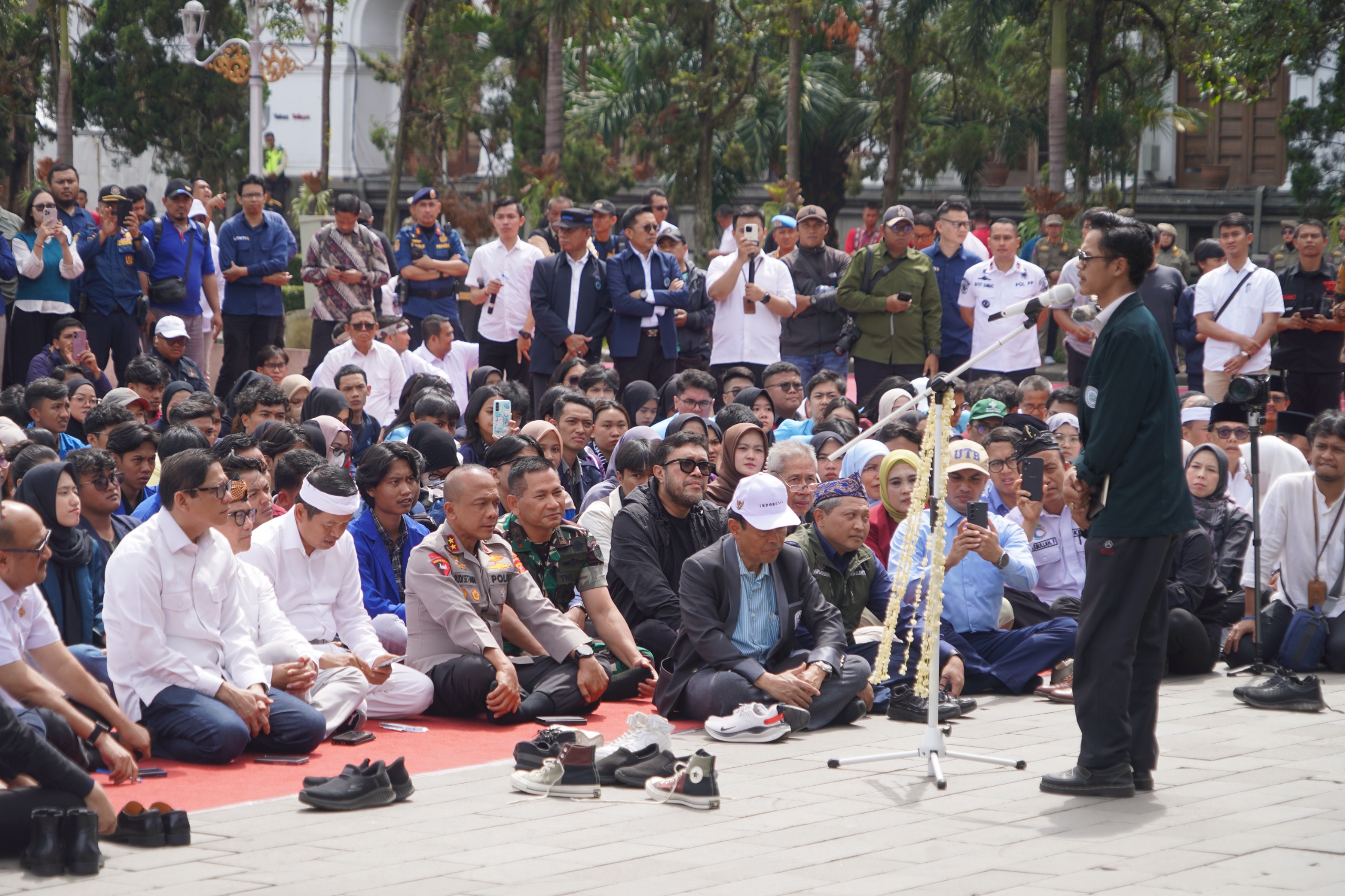 Dalam sambutannya, Gubernur Dedi Mulyadi menyikapi rangkaian aksi unjuk rasa mahasiswa yang terjadi dalam beberapa hari terakhir. Ia menyebut bahwa gelombang demonstrasi tersebut merupakan bentuk ekspresi keresahan sekaligus otokritik dari mahasiswa terhadap pemerintah.